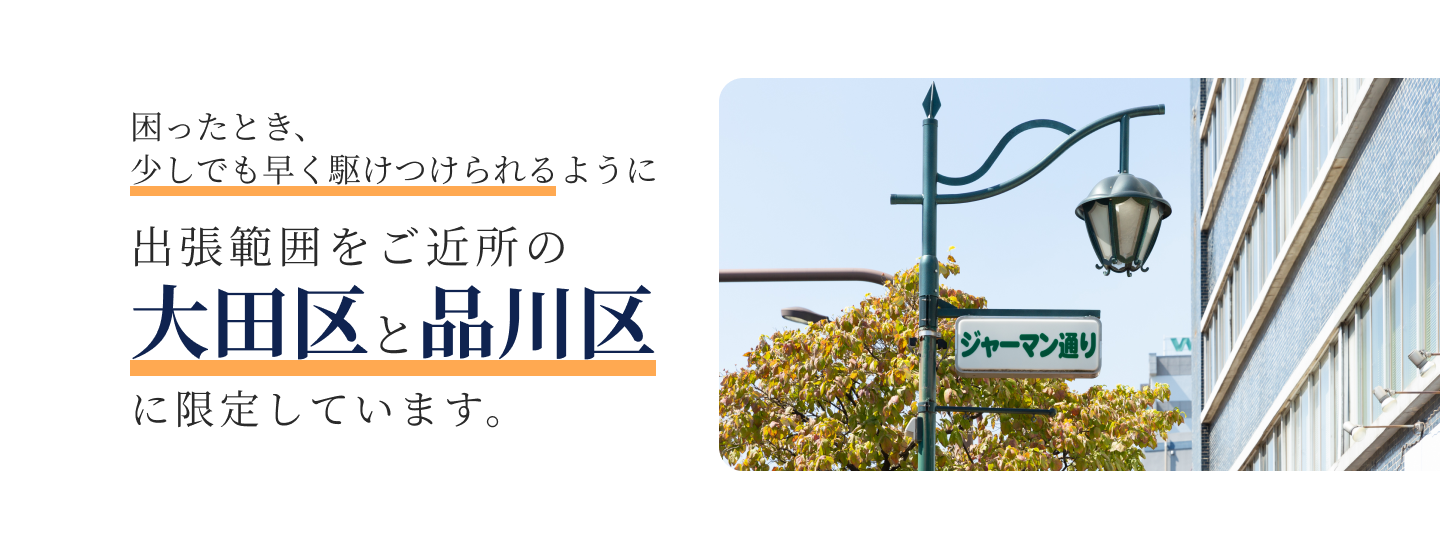※困ったとき、少しでも早く駆けつけられるように、出張範囲を大田区と品川区のご近所に限定しています。