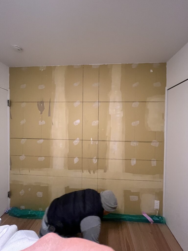 壁一面にエコカラットプラス貼付完了です。