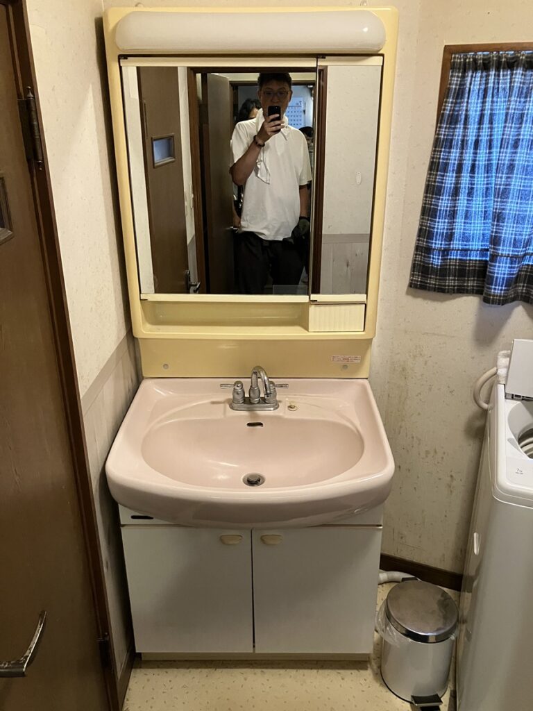 洗面化粧台を設置して完成です。