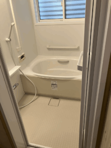 浴室のリフォームの際に必然的に洗面所(脱衣場)側も少々傷める事になりますので、『この際洗面所(脱衣場)もリフォームしちゃおう』という事になって洗面所(脱衣場)の壁・天井・床・洗面化粧台の交換をご注文となりました。