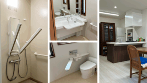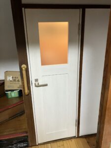 洗面とトイレを1室にし、入口は引戸です。将来的に車いすでも出入りが可能な広い開口が取ってあります。